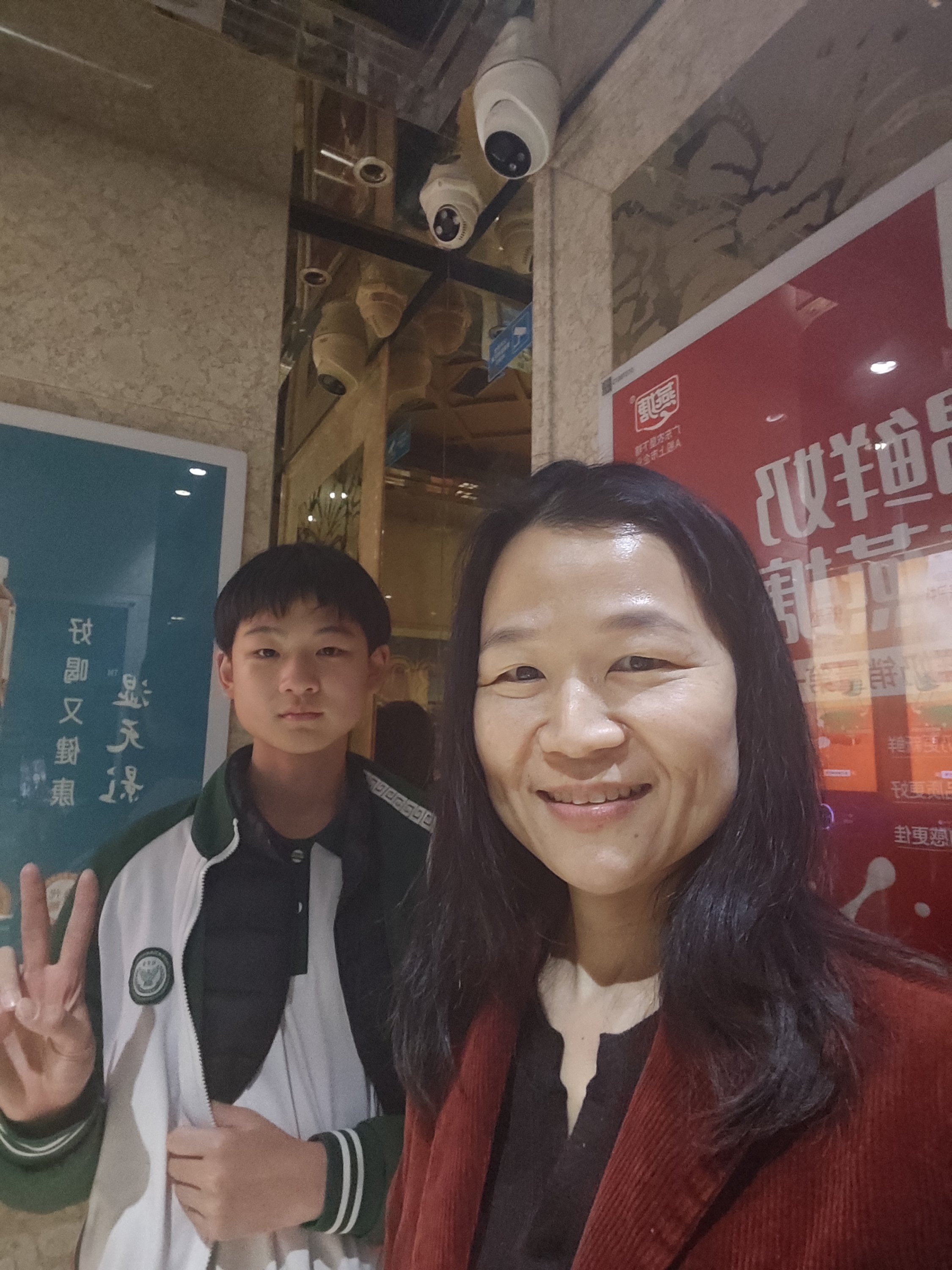 和英语代课老师拍照留念